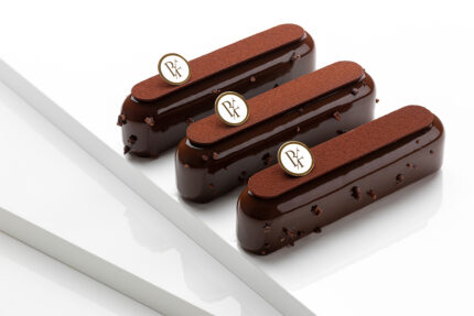Sablé cacao , biscuit moelleux chocolat , crémeux vanille tonka , mousse chocolat 64%