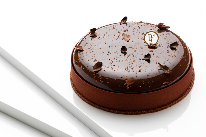 Sablé cacao , biscuit moelleux chocolat , crémeux vanille tonka , mousse chocolat 64%