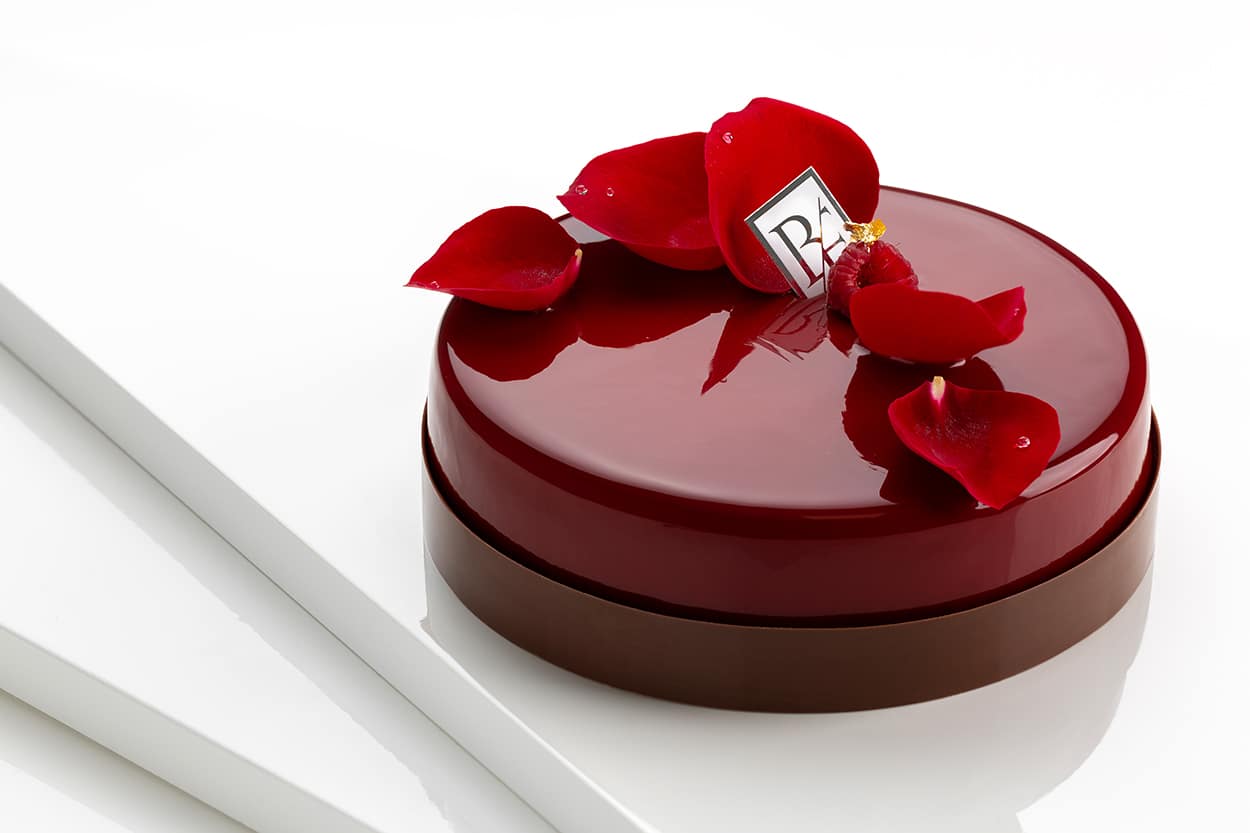Croustillant chocolat , biscuit moelleux chocolat , compotée de framboises , mousse chocolat 65%